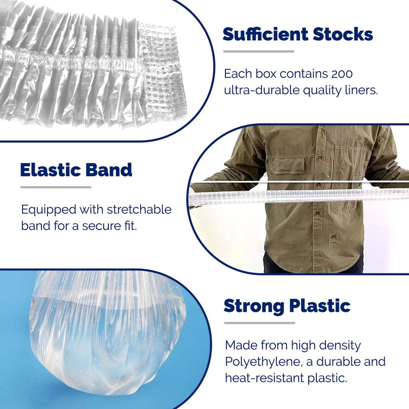 - Thick Plastic: Thick premium quality liners are made out of High Density Polyethylene, an elastic, durable & heat resistant plastic. It doesn't melt nor break at high temperature keeping it safe for a hot foot bath.