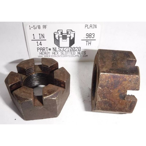 AMERICANINTEGRATEDSUPPLY.COM 1"-14 HEAVY HEX SLOTTED NUT STEEL PLAIN 1-5/8 AF X .983 TH (2)