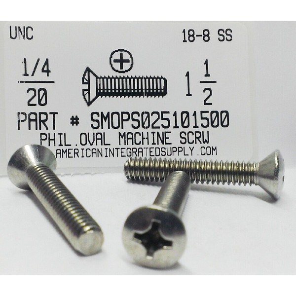 AMERICANINTEGRATEDSUPPLY.COM 1/4-20x1-1/2 Oval Head Phillips Machine Screws Stainless Steel (10)