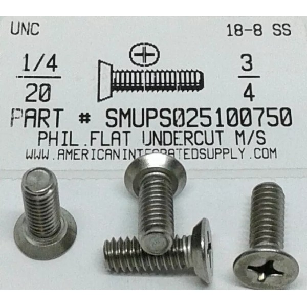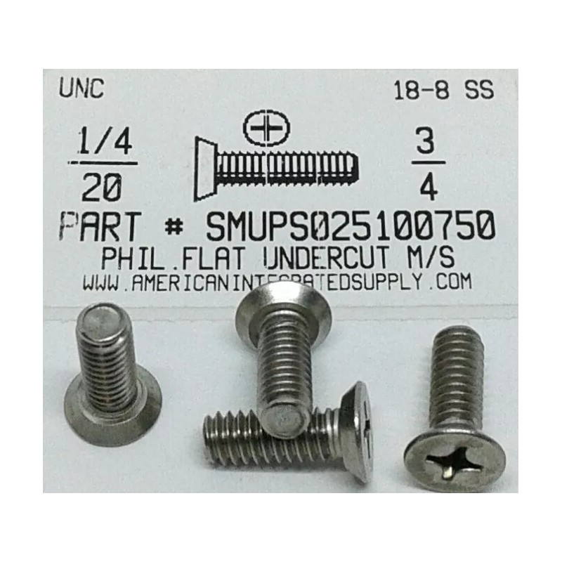 AmericanIntegratedSupply.com 1/4-20x3/4 Undercut Flat Head Phillips Machine Screws Stainless Steel (25)