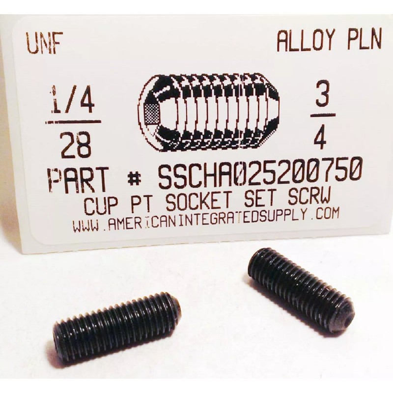 AMERICANINTEGRATEDSUPPLY.COM 1/4-28x3/4 Hex Socket Set Screws Cup Point Alloy Steel (25)