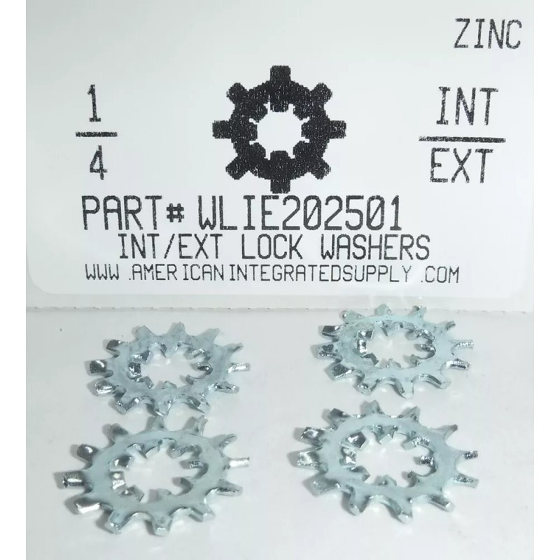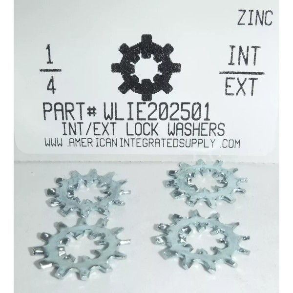 1/4" Internal-External Tooth Lock Washers Steel Zinc Plated. These are also available by the piece at our web site. Larger quantities are available, please inquire. We also carry nuts and washers to match. All items are packaged in heavy duty ziptop bags and well labeled, perfect size for bin restocking! We carry 1000's of other fasteners in stock for immediate shipment. We have over 50 years of experience serving Metro Detroit. Send us your requirements. For prompt Quotations, E-mail; sales at americanintegratedsupply dot com or visit us at; www dot americanintegratedsupply dot com