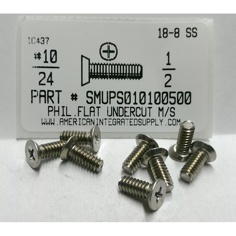AmericanIntegratedSupply.com #10-24x1/2 Undercut Flat Head Phillips Machine Screws Stainless Steel (50)
