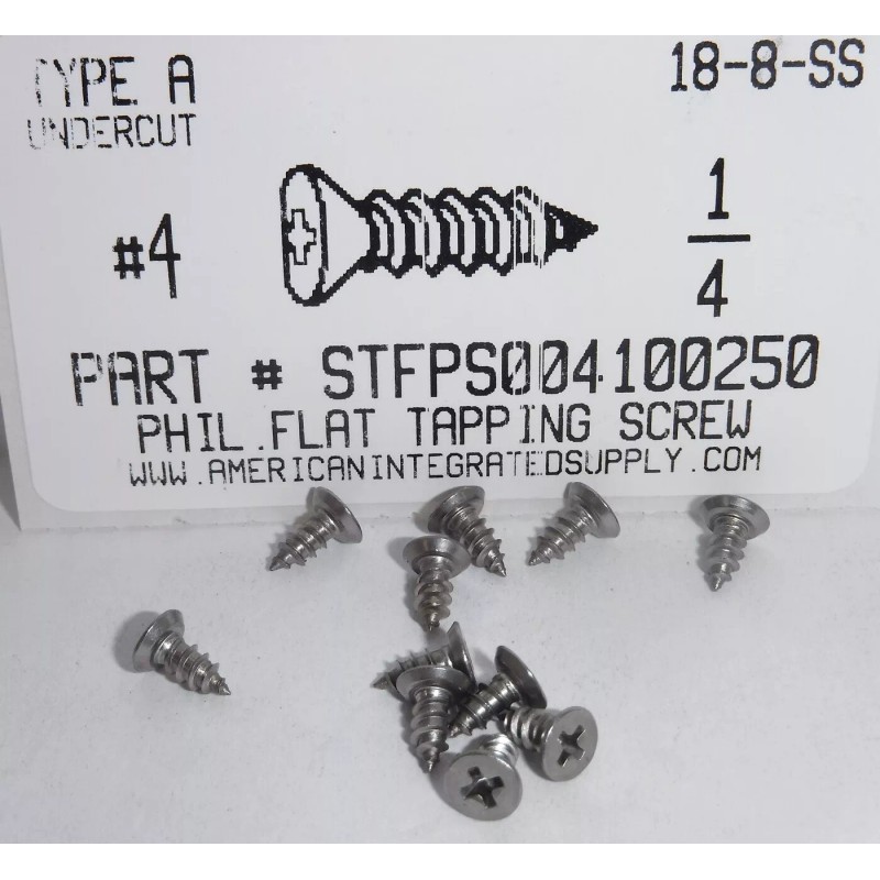 AMERICANINTEGRATEDSUPPLY.COM #4x1/4 Undercut Flat Head Phillips Tapping Screws Stainless Steel (100)