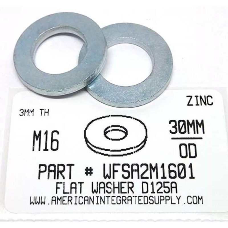 AMERICANINTEGRATEDSUPPLY.COM M16 FLAT WASHERS STEEL ZINC PLATED D125A 17.0IDX30.ODX3