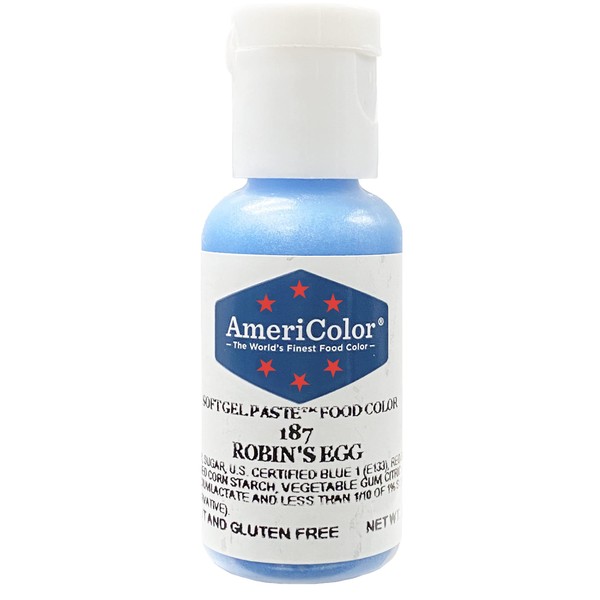 - Single .75 ounce bottle of Robins Egg Soft Gel Paste food color. Each bottle is formulated with the highest quality ingredients to achieve the most vibrant results with the least amount of product.
