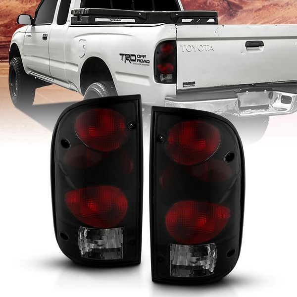 AmeriLite for 1995-2000 Toyota Tacoma Black Smoke Replacement Tail Lights w/Bulb Harness Set - Passenger and Driver Side.