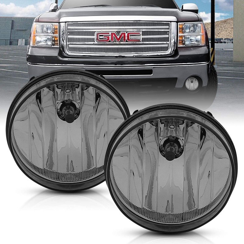 AmeriLite for 2007 2008 2009 2010 2011 2012 2013 GMC SIERRA Smoke Bumper Fog Lights Pair - Passenger and Driver Side