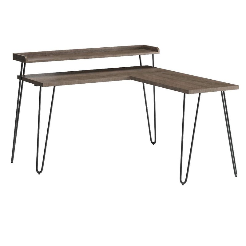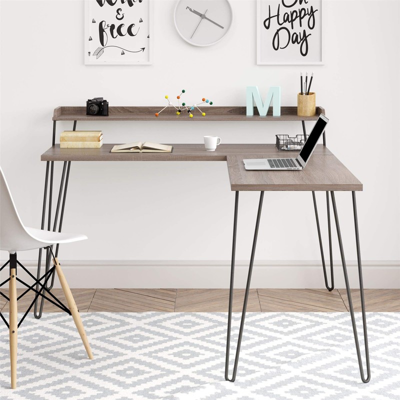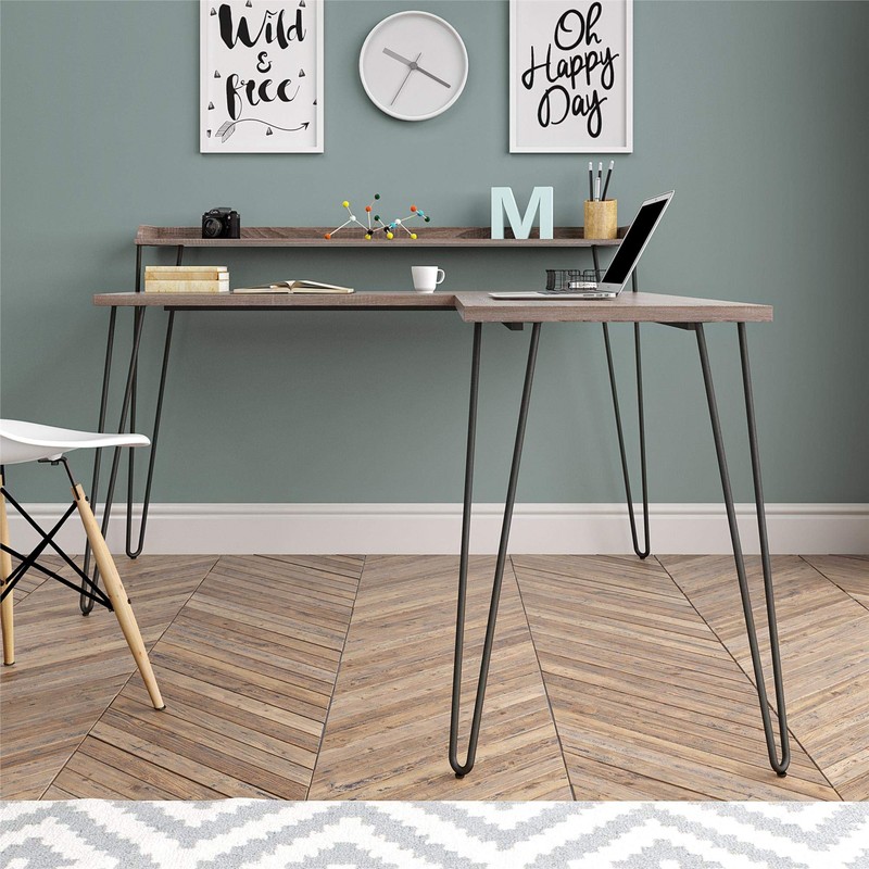 - MODERN STYLE FOR YOUR SPACE: Ameriwood Home Haven L-Desk with Riser brings together industrial and modern styles, creating a unique look for your home office; The metal hairpin legs add a retro twist to your workspace