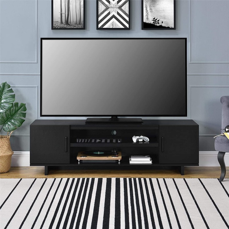 - Update your room without taking up a lot of space with the Ameriwood Home Southlander TV Stand for TVs up to 65” wide or 120 lbs.