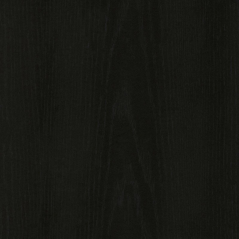 laminated particleboard, the black oak woodgrain finish and black H panel feet