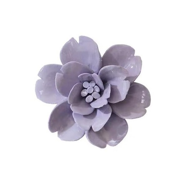 AMERRY Snow Lotus,3.54" Ceramic Flower Wall Art, Artificial 3D Flower Wall Art, Handmade 3D Wall Art Hanging Sculpture, Porcelain Flower Wall Decoration for Home Office Decor (Purple)