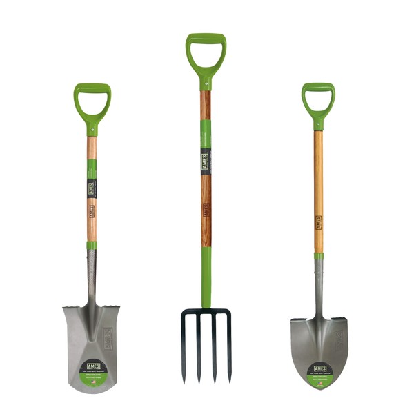 - INCLUDES: (1) AMES Border Spade, (1) AMES Digging Fork, and (1) Round Point Shovel