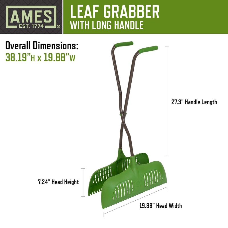 AMES Leaf Grabber Rake with Long Handle & Cushioned Grip for Leaves, Lawn Clippings, Twigs, Yard Waste