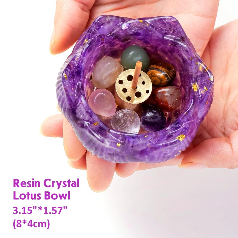 - Resin Crystal Lotus Incense Burner Set - The combination of crystal and resin is crafted into a lotus shape, which not only adds an elegant touch to your space but also serves as a practical and beautiful container for burning incense, creating a serene and relaxing atmosphere.