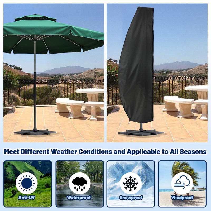 - 【Easy to Clean & Store】Our parasol cover is very easy to clean, just rinse the umbrella cover with water and dry it in the sun. In addition, this protective cover can be folded up well for storage and comes with an extra carry bag for easy storage when not in use. Please note that try not to wash the parasol cover in the washing machine, as this will shorten the life of the umbrella cover