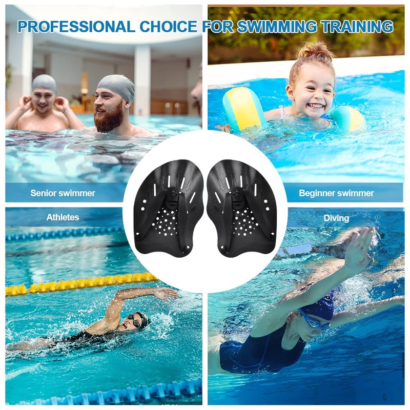 AMFUN Swimming Paddles, Hand Paddles, Swimming Paddles with Adjustable Straps, Pool Exercise Equipment, Strength Training Aid, Strength Training Aid Accessories for Swimming, Women, Men, Children,