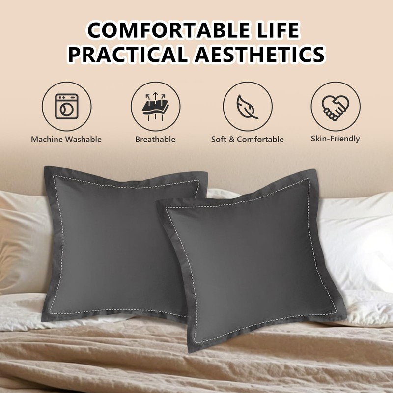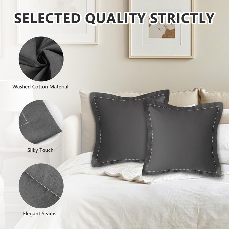 AMFUN Washed Cotton Cushion Covers, Cushion Cover 40 x 40 cm (Set of 2), Pillowcase with Zip for Sofa Bedroom