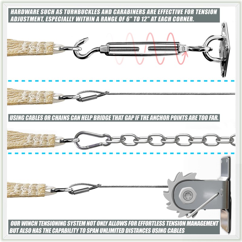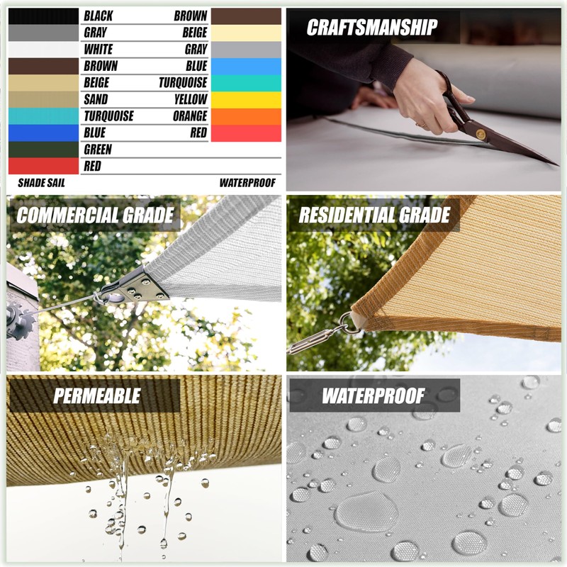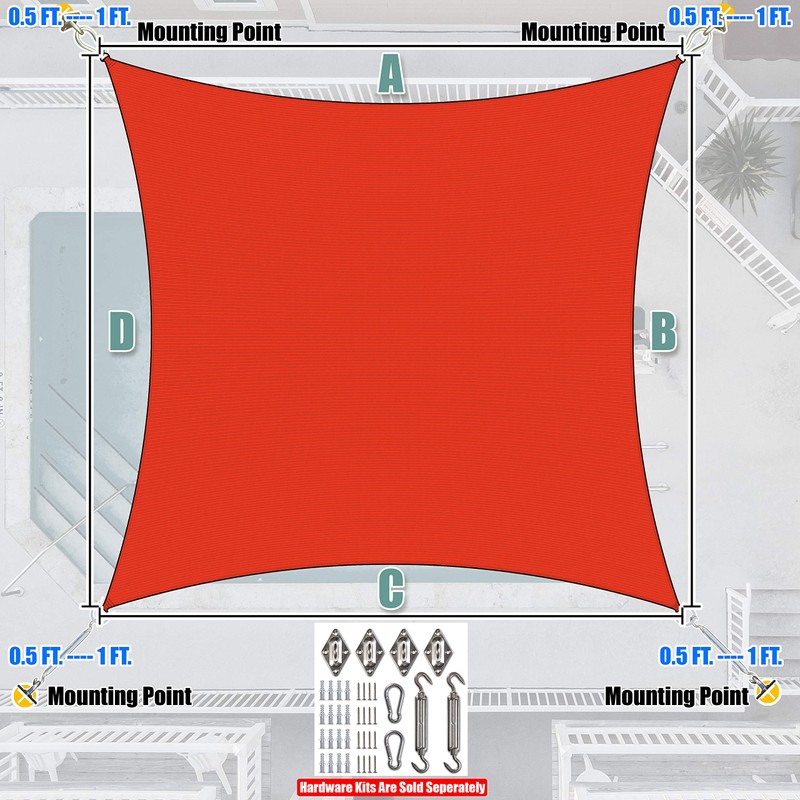 - 【Easy & Flexible Installation】: Effortlessly install our shade sail by determining the area, selecting the shape, and securely attaching it to trees, roofs, walls, or other surfaces using mounting hardware kits. For optimal performance, ensure that each corner has a gap of at least 0.5 ft between D-Rings and poles, or reduce by 1 to 1.5 ft for each side.