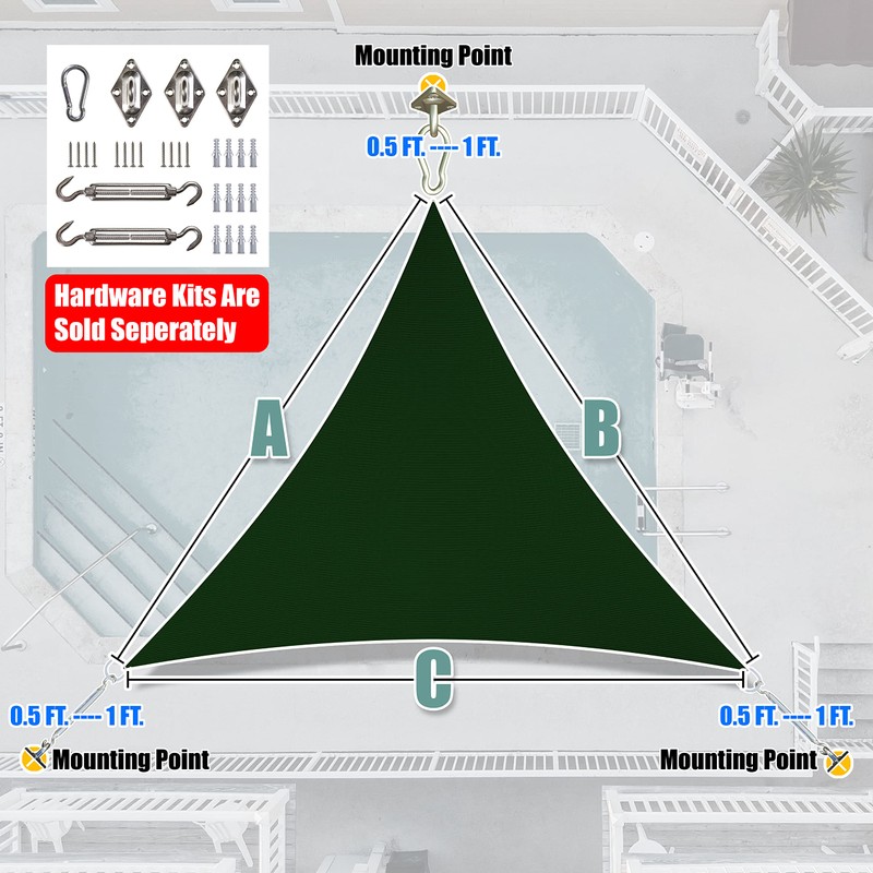 - 【Easy & Flexible Installation】: Effortlessly install our shade sail by determining the area, selecting the shape, and securely attaching it to trees, roofs, walls, or other surfaces using mounting hardware kits. For optimal performance, ensure that each corner has a gap of at least 0.5 ft between D-Rings and poles, or reduce by 1 to 1.5 ft for each side.