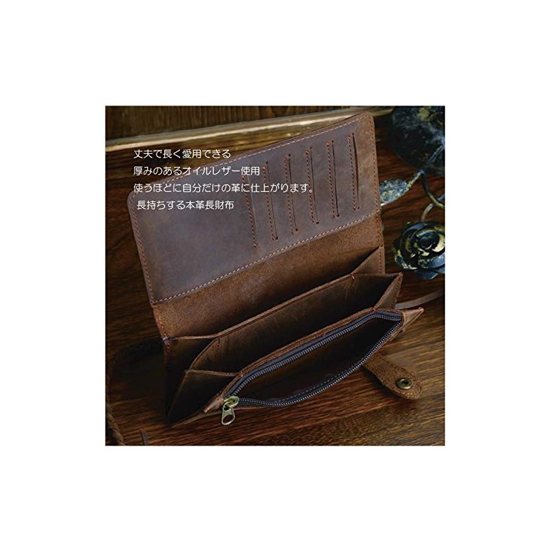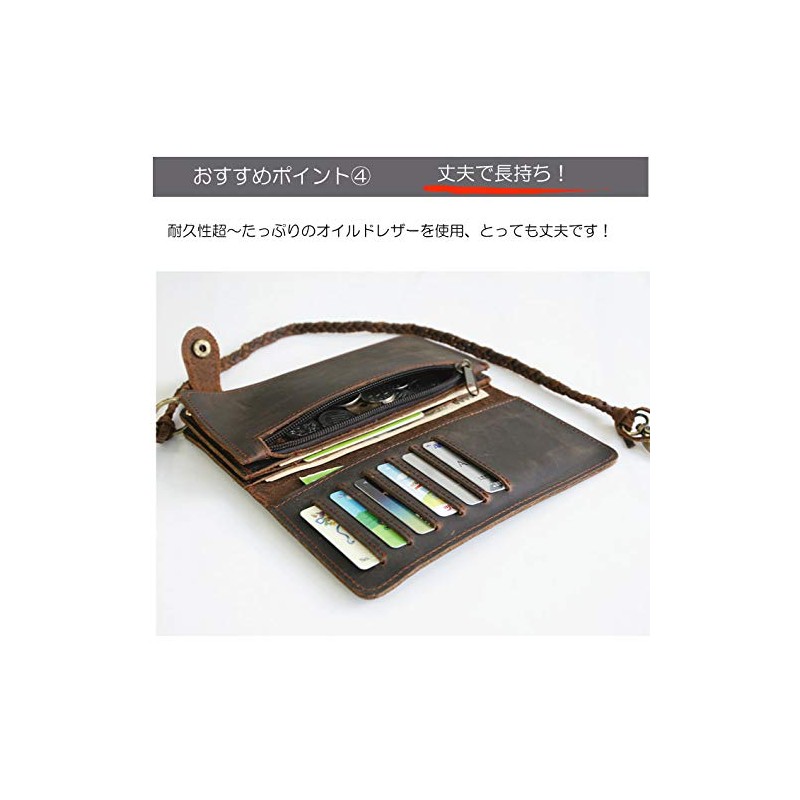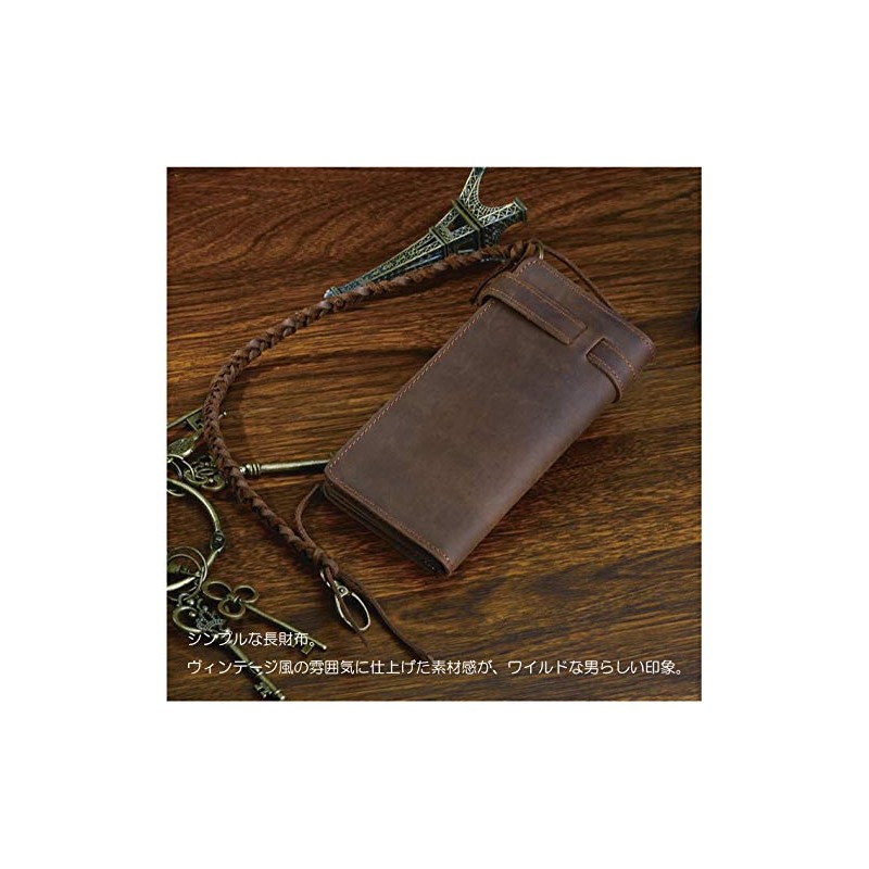 AMgrocery Men's Genuine Leather Long Wallet with Chain, Holds Many Cards, Vintage Style, Large Capacity, dark brown