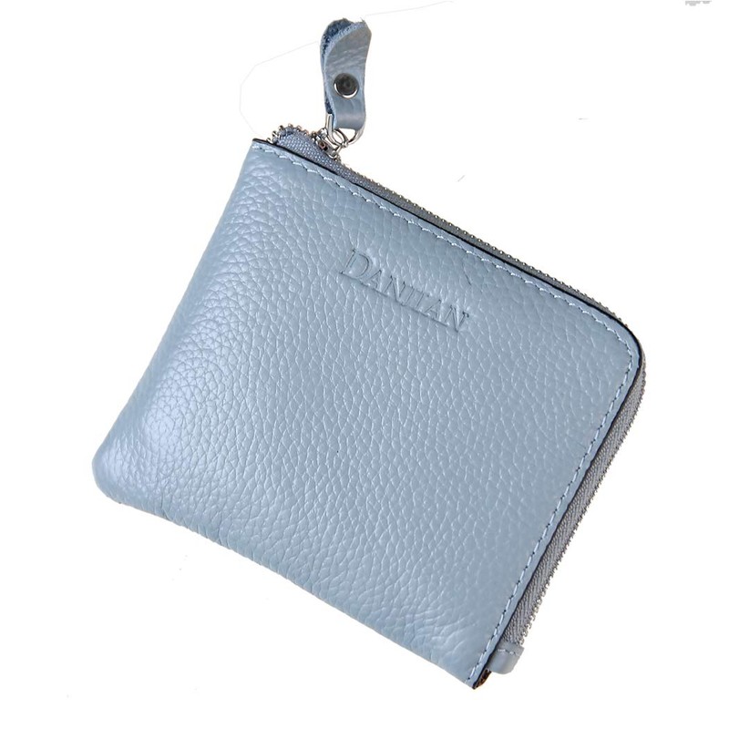 AMgrocery Men's Women's Mini Wallet, Genuine Leather, L-Shaped Zipper, Compact, Unisex, Popular, Stylish, Sax Blue, blue