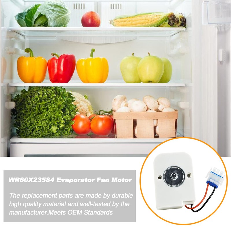 - BUY WITH CONFIDENCE- For any reason you're not completely satisfied with our WR60X23584 refrigerator fan motor, you can ask for a replacement or full refund. if there is damage caused by non-human factors within 6 months,we will refund it for free.- If you are not sure whether this WR60X23584 refrigerator evaporator fan motor fit your appliance, please feel free to contact us or ask a question through Amazon. Don't hesitate, this motor help to solve your worries immediately