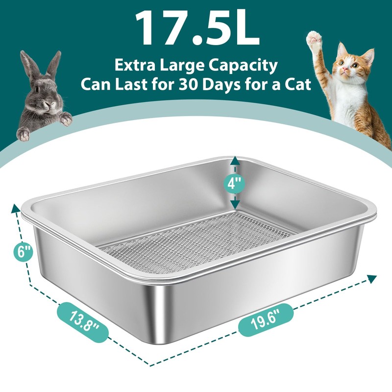 - 【Stainless Steel Sifting Litter Box】In contrast to conventional plastic sifting litter boxes, our stainless steel litter box is robust and enduring. It is simple to clean, features a non-stick surface, is scratch-resistant, odor-resistant, and designed for long-term use
