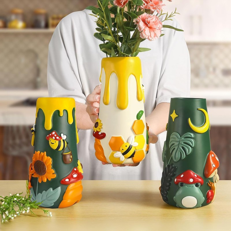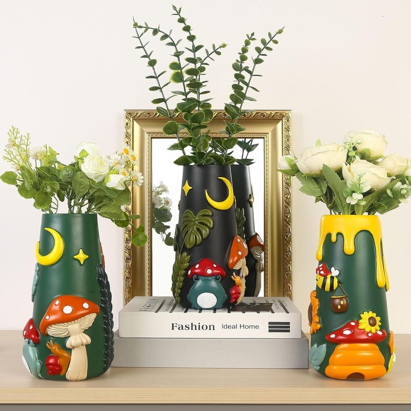 - Cute Frog Garden Vase: Bring a touch of whimsy and colour to your home or office with this enchanting frog garden flower vase. With timeless mushroom and frog elements, this modern vase adds a playful yet elegant flair to your flowers and decor. The 360-degree design ensures that it is a fascinating piece from any angle. Perfect for adding personality to any room, be it your home, office, or garden.