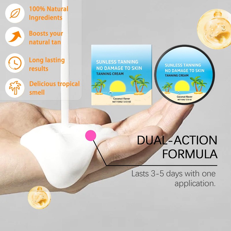 1. Product Overview:Craving a natural - looking tan but dreading harmful UV rays or uneven results? Our Sunless Tanning Cream is your answer! Packed with 100% natural ingredients like mango seed oil and carrot extracts, it delivers a long - lasting, sun - kissed glow—no need to bake in the sun. Whether you’re prepping for a holiday, want a year - round bronzed look, or just hate the hassle of traditional tanning, this cream makes getting a perfect tan easy, safe, and enjoyable.