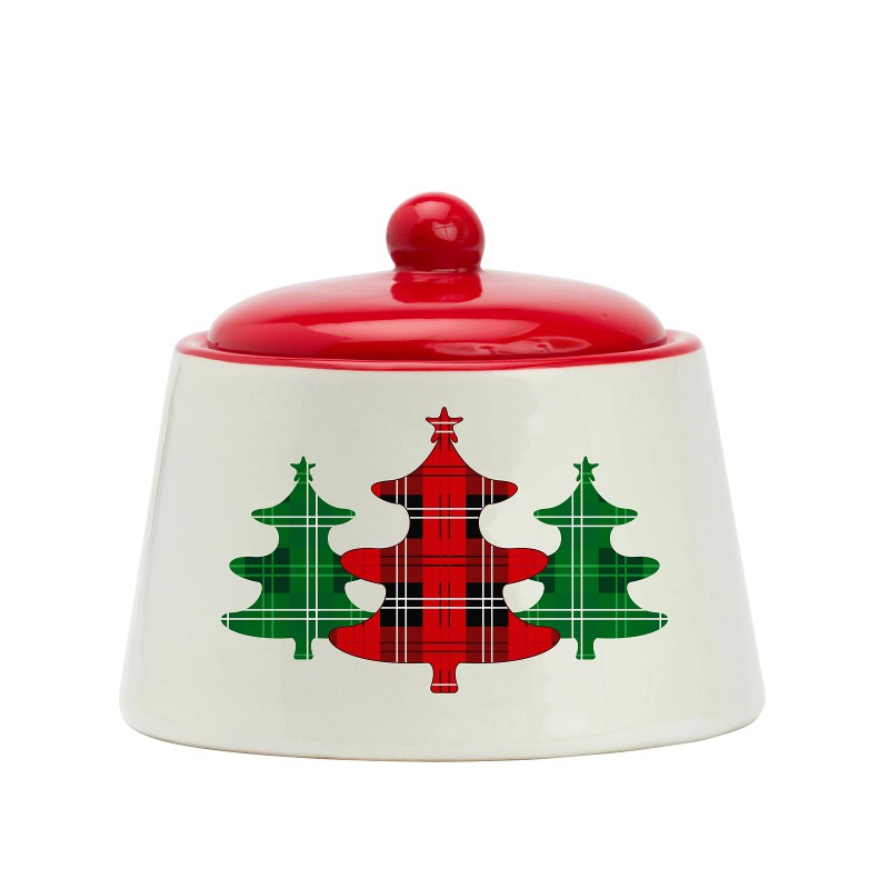 - Charming Festive Design: Celebrate the holiday season with the plaid Xmas tree design featured on this ceramic sugar bowl. Its cheerful pattern instantly brings Christmas charm to your kitchen, enhancing the joy of holiday baking and cooking.