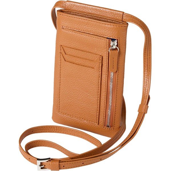 amidiio Men's Smartphone Pouch, Genuine Leather, Shoulder Bag, Coin Purse, Mobile Payment, Adjustable Length, Camel