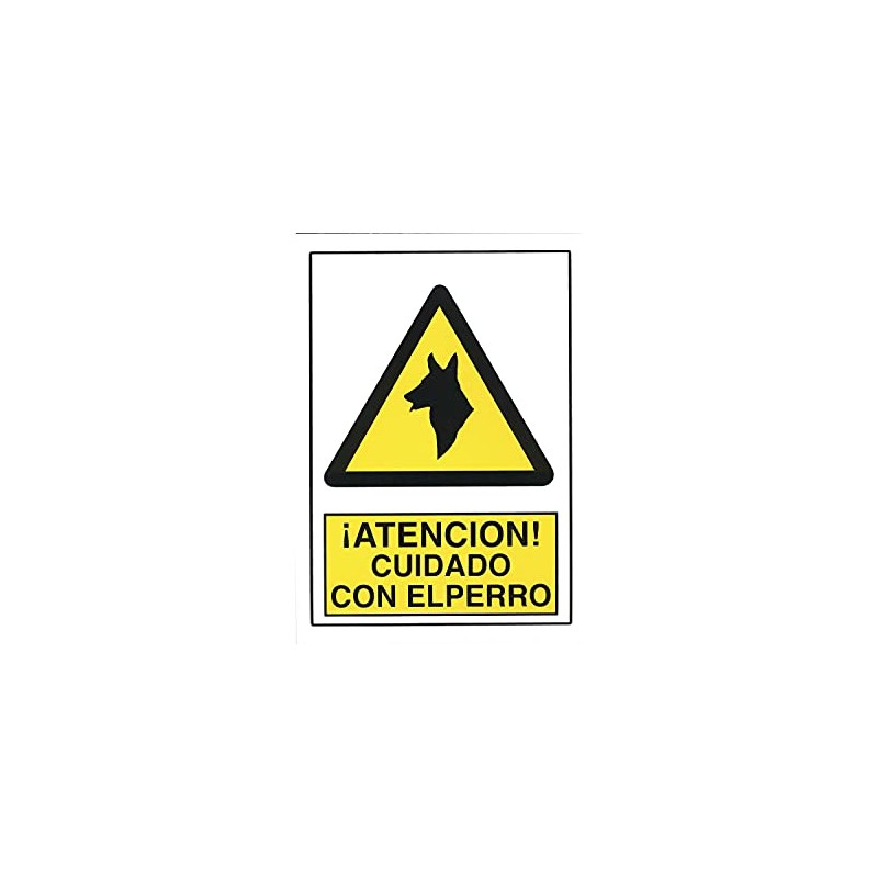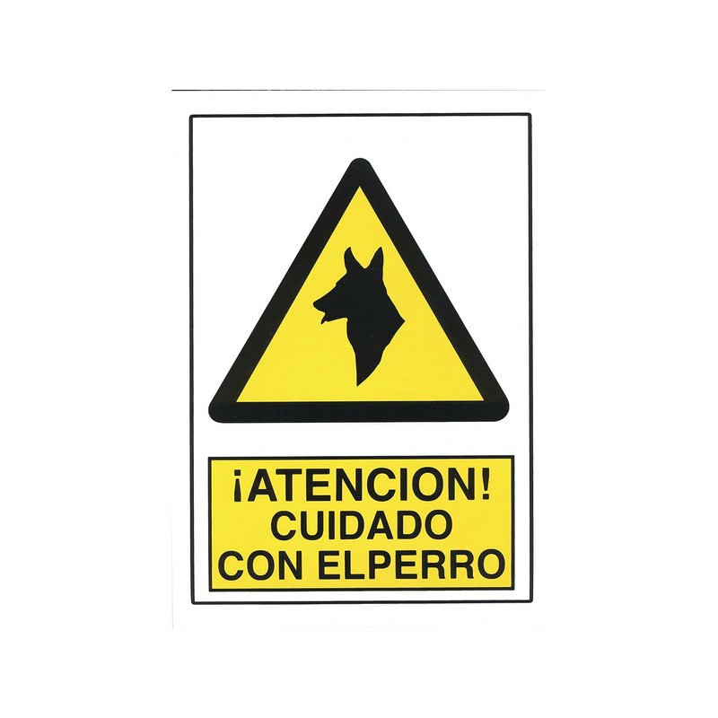 - Description: Warning sign with the dog made of lightweight and weatherproof polyethylene, suitable for indoor and outdoor use. Durable, made with high adhesion inks.