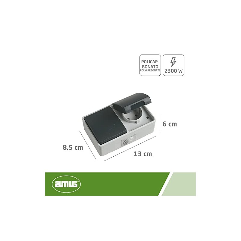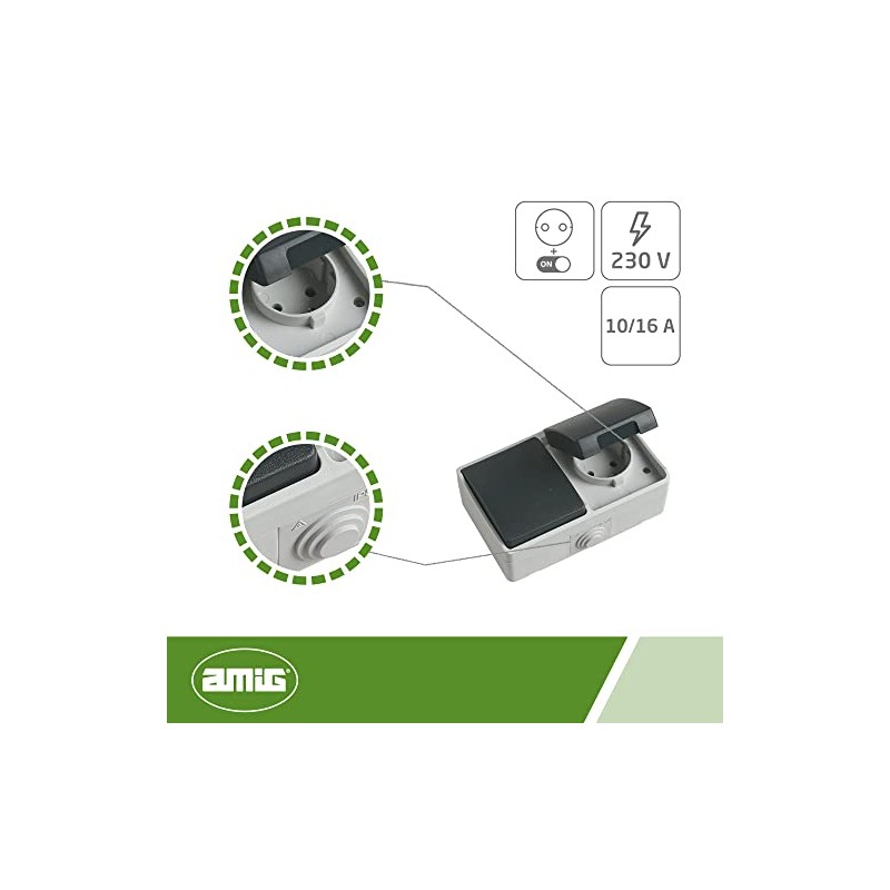 Amig 3620 Switch + Base Waterproof IP54 10a/16A 230V Grey