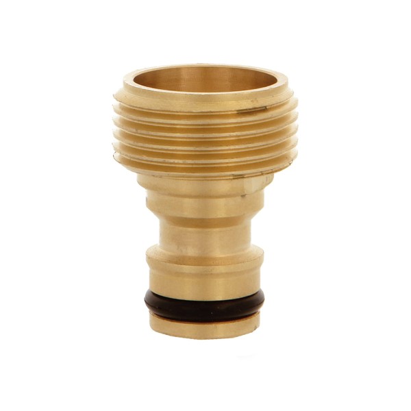 - Detailed Technical Information The dimensions of the male adapter are 3/4 inch. In addition, it is made of brass, a material resistant to the usual weather changes, such as rain and summer heat, as well as abrasion resistant due to continuous use.