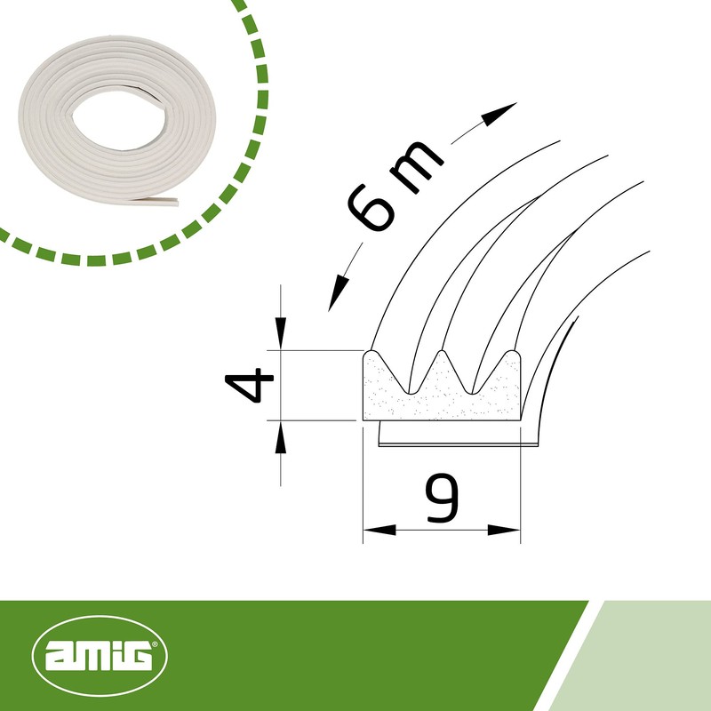 amig Adhesive Rubber Draught Excluder to Prevent Air Draught Excluder on Sliding Doors and Windows – 6 m in 2 3 m Strips, White, Insulation for Hollow 1-3.5 mm