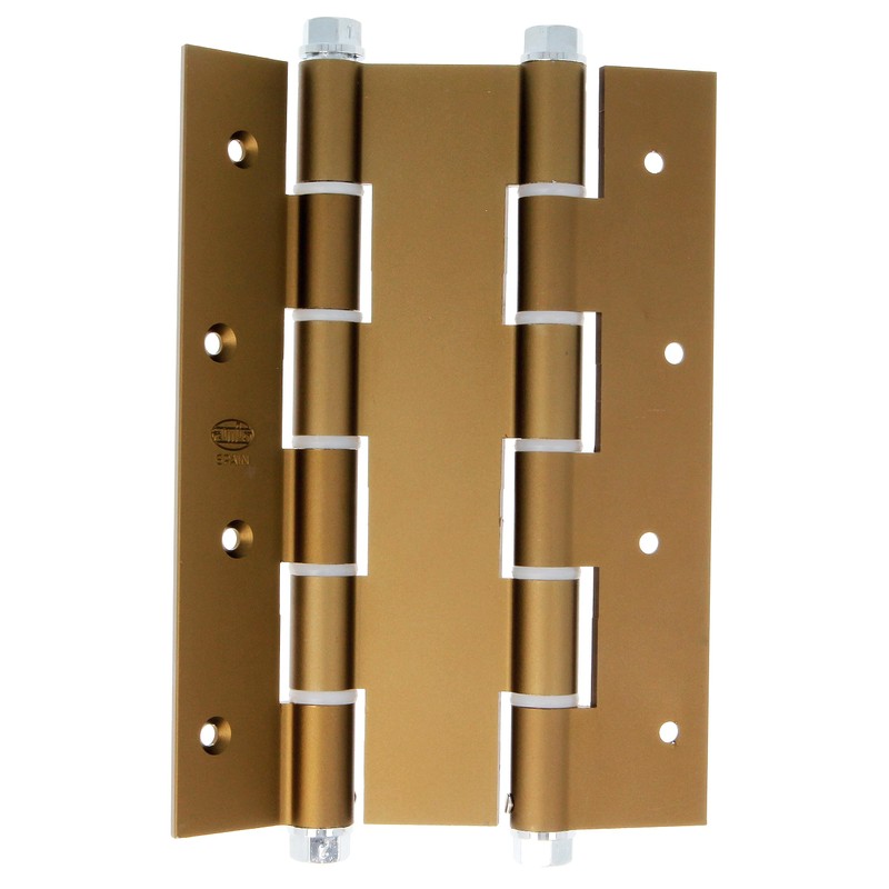 - DOUBLE HINGE This double or swivel hinge is an essential element for the operation of entrance and passage doors. It features a universal 2-blade system with 8 recessed holes.