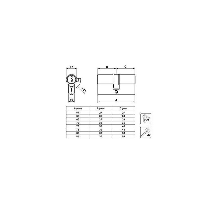 - DETAILS: Cylinder measurements: 70 (30-40 mm from the center of the cam). Material: Brass. Choose the bowler that best suits your lock. Please refer to all measurements available in the pictures.