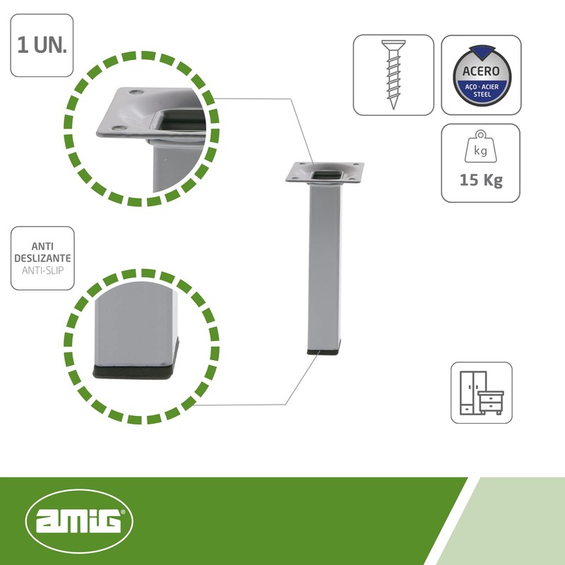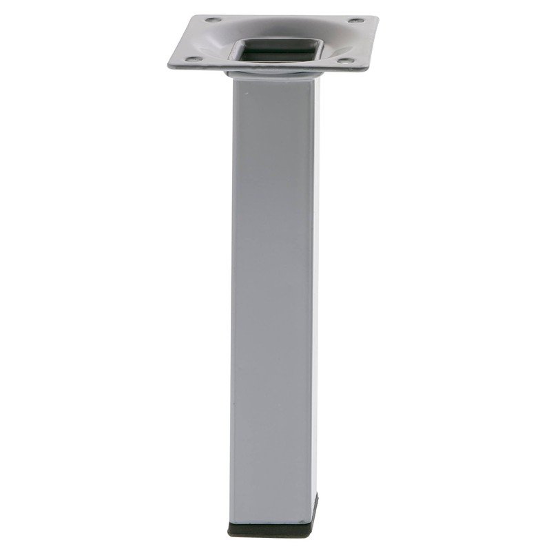 Amig - Square Furniture Leg | Model 3 | 25 x 25 x 300 mm | with Control Screw | 4-Point Screwed | Load Capacity up to 15 kg / Leg | Steel Silver
