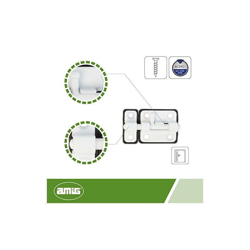 Amig - Zamak Door Bolt | Bolt Mod. 383 | Door Lock in White | Door Lock Bolt Door Slider | Dimensions: 38 x 34 | Screw-On Lock | With Plastic Base