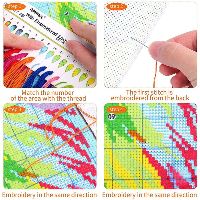 - Easy and Funny: 11 count stamped fabric size: 40×40 cm/15.7×15.7 inches. NO need to draw grids. High-definition patterns preprinted with nontoxic & washable dye