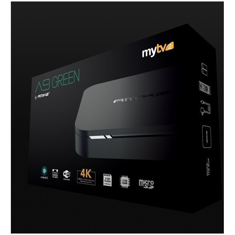 Amiko A9 Green ANDROID MTYV2 4K UHD QUAD CORE WIFI HDR10 A 9 Green UK PLUG TV BOX AMIKO