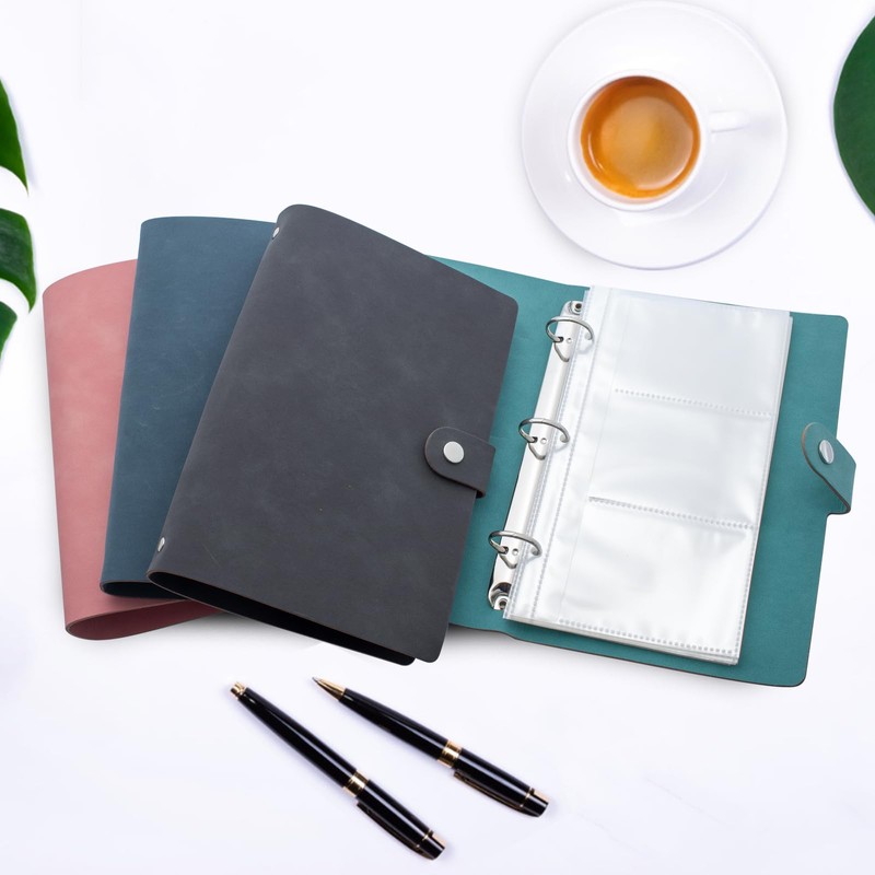 Bewahren Sie Ihre Visitenkarten ordentlich und geschützt mit dem Visitenkartenhalter-Buch auf - das perfekte Accessoire für Berufstätige, die viel unterwegs sind.