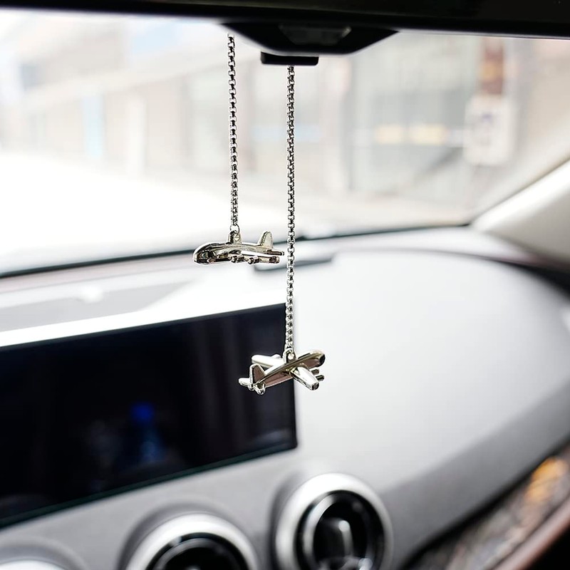 - FEATURES: The mini airplane made with plating process, metal texture and delicate appearance, The smooth and reflective surface makes it looks sparkly when the sun shines. You can twine the chain to adjust length, invoid to hit the glass when braking. And shake slightly when driving, which can well eliminate the driver's visual fatigue and increase safety.