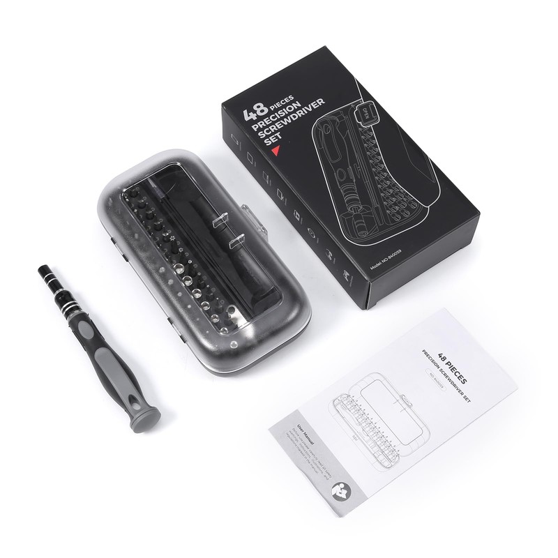 - 【48-in-1 Luggage Shape Screwdriver Set】This screwdriver set includes 41 pieces of CRV nickel-plated bits, undergoes high-temperature quenching for durability, with a hardness of 54±2HRC. It offers a wide variety of bits that conform to international standards, meeting 99% of your daily maintenance needs.