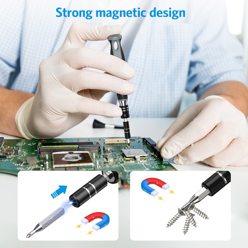 WIDELY USED-The precision screwdriver set can be used for repairing smartphones, iPhones, MacBooks, iPads, electronics, watches, cameras, laptops, eyeglasses, circuit boards, toys, PCs, game consoles, and more. The kit is also a perfect gift for your family, friends or colleagues.