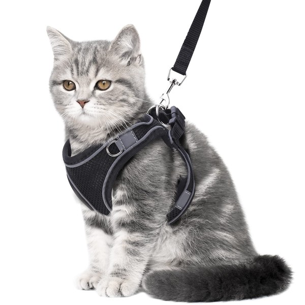 AMIR Cat Harness and Leash for Walking, Breathable Cat Leash Escape Proof, Adjustable Vest Harnesses for Small Medium Cats and Small Dogs, Breathable Reflective Strips Jacket-Black, XS