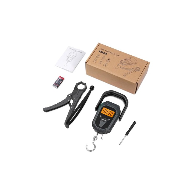 AMIR Fish Scale, 110lb/50kg Backlit LCD Display Digital Luggage Scale, Electronic Fishing Scale with Lip Gripper, Digital Weight Scale with 38'' Measuring Tape, Pocket Size, Fishing Gifts for Men