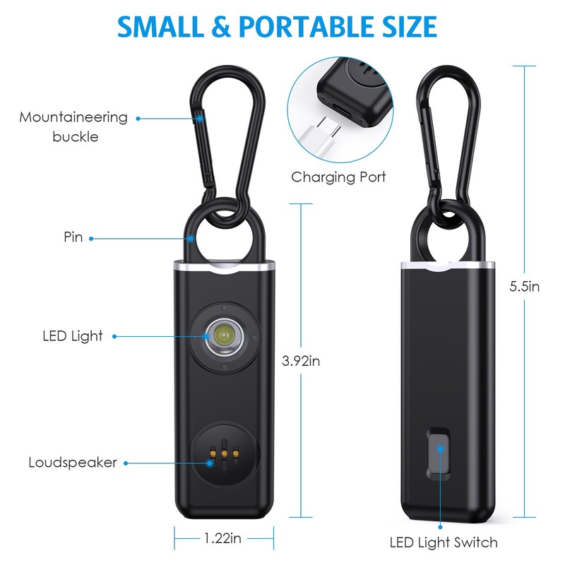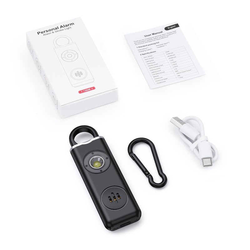 - 【Powerful 130 dB Personal Safety Alarm】Our siren is a must-have for safety. Pull the pin to release a 130 dB loud sound and flashing strobe light. It's highly visible and audible, ensuring you get noticed in any risky situation, keeping you safe