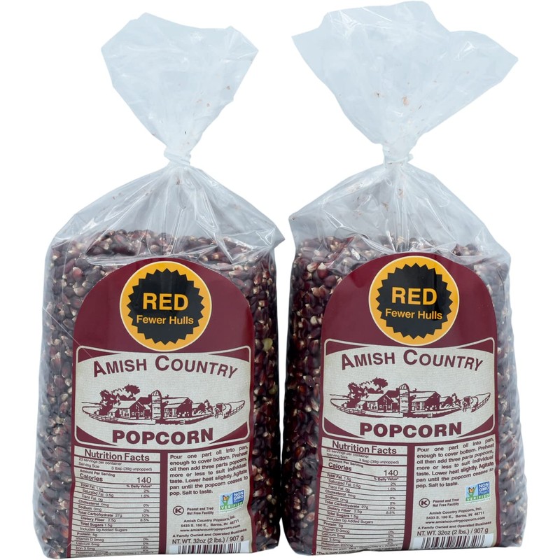 Amish Country Popcorn | 2-2 lbs Bags | Red Popcorn Kernels | Old Fashioned, Non-GMO and Gluten Free